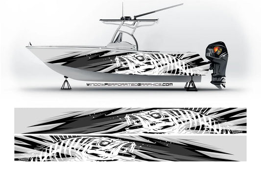 Drum Fishbones Graphic Vinyl Boat Wrap Decal Sea Doo Pontoon Sportsman Console Bowriders Deck Watercraft Any Model Boat