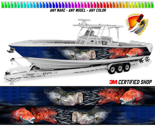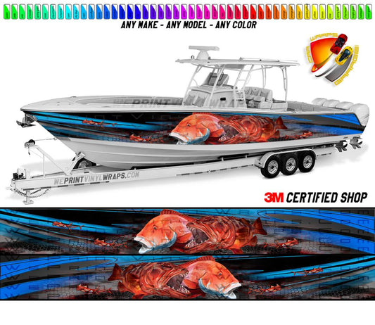 Coral Trout and Emperor Fish Blue Graphic Boat Vinyl Wrap Fishing Pontoon Sea Water Sports Watercraft etc.. Boat Wrap Decal