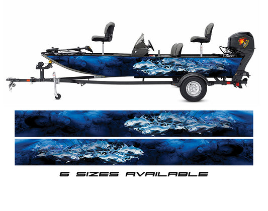 Dark Blue Smoky Fishes Graphic Vinyl Boat Wrap Decal Fishing Bass Pontoon Sportsman Tenders Console Bowriders Deck Boat Watercraft Decal For all Boats
