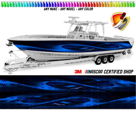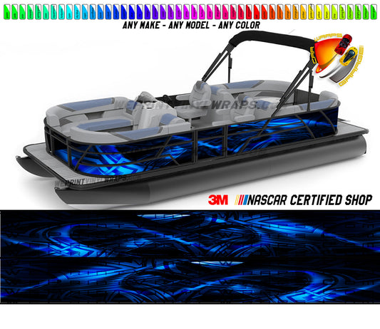 Dark Blue Wavy Graphic Vinyl Boat Wrap Decal Fishing Pontoon Sportsman Console Bowriders Deck Boat Watercraft All boats Decal