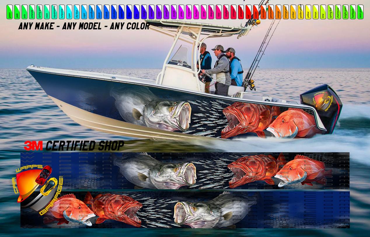 Coral Trout Barramundi and Emperor Fish Graphic Boat Vinyl Wrap Fishing Pontoon Sea Water Sports Watercraft etc.. Boat Wrap Decal