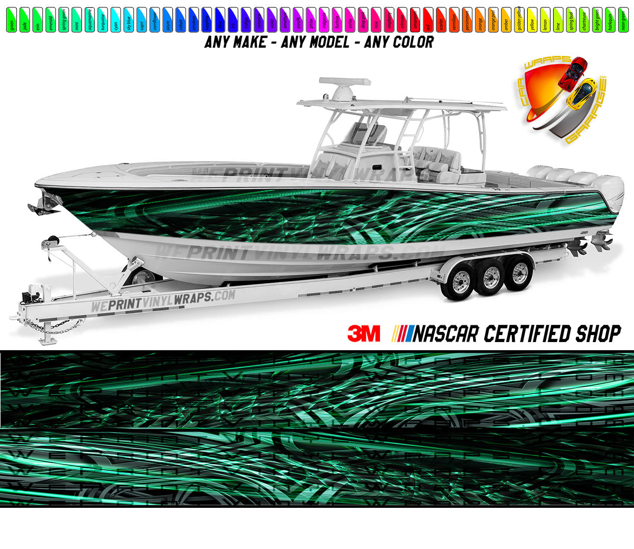 Dark Green and Light Green Graphic Vinyl Boat Wrap Decal Fishing Pontoon Sportsman Console Bowriders Deck Boat Watercraft All boats Decal